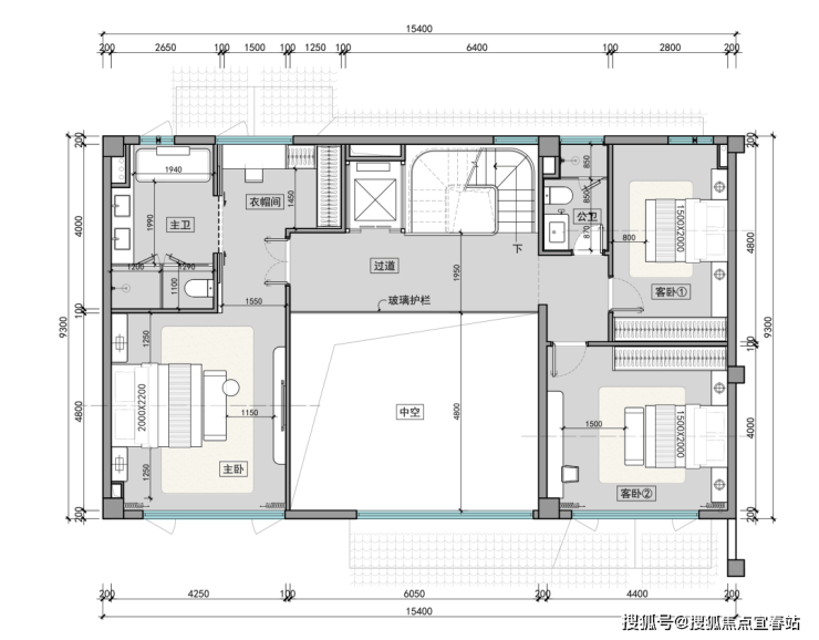 二层卧室布局错落有致,挑空区丰富空间层次;