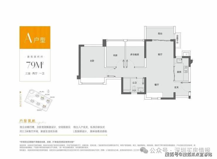 建面约79㎡实用三房