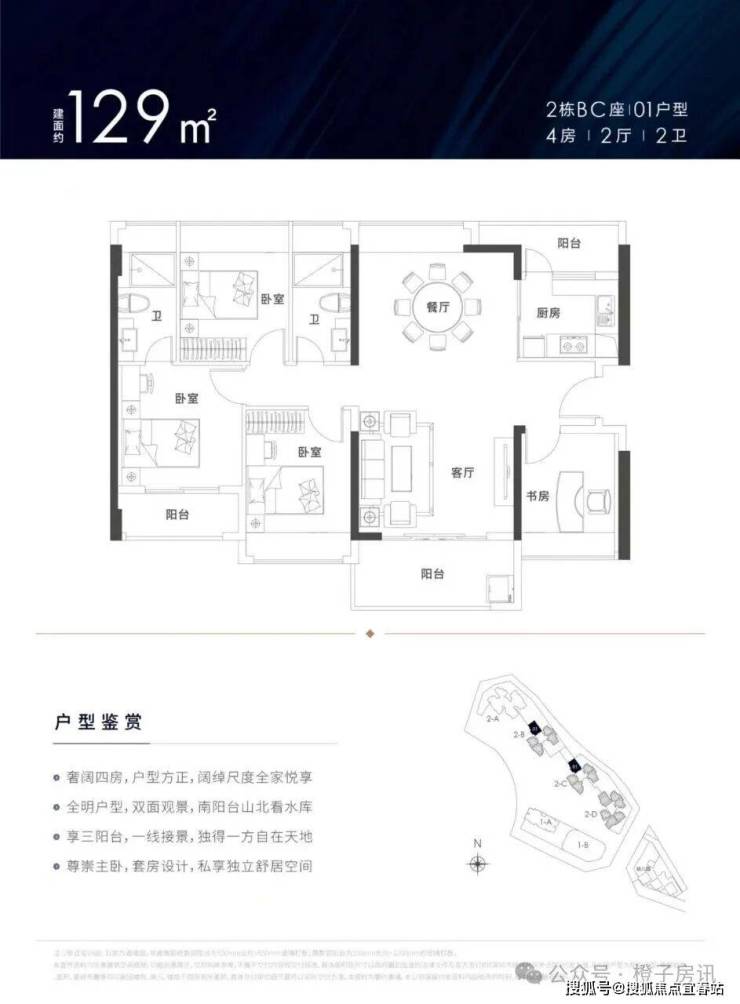 建面约79-129㎡3-4房户型,南北通透,3房3.5~3.7m,4房3.8~4.2m,罕见阔绰开间,客厅、厨房、卧室三阳台多飘窗,超高使用率。