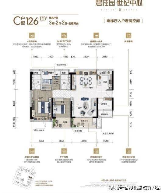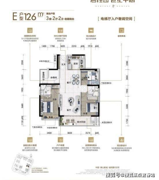 【臻品户型--126㎡ 3房2厅2卫+创意阳台】