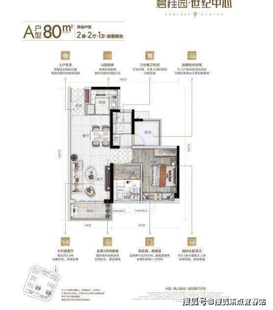 【灵动户型--80㎡ 2房2厅1卫+创意阳台】