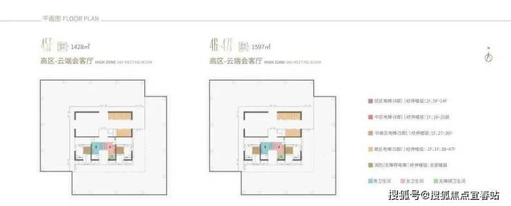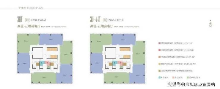 企业会客厅:38-44F:338-479㎡45-47F:1,427-1,596㎡(整层)