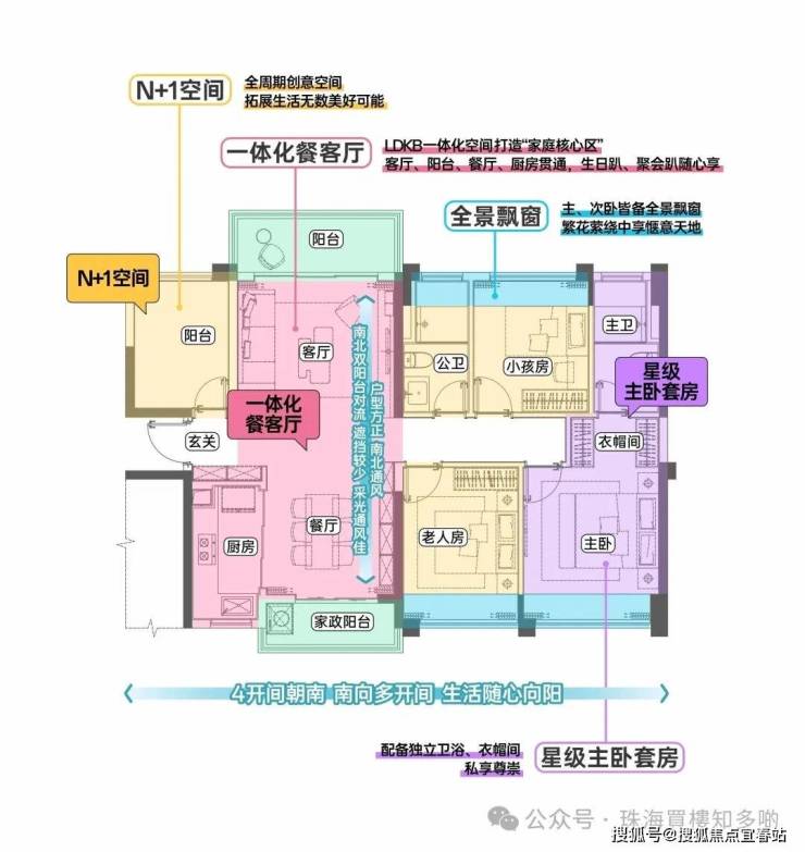 独立玄关+LDKB多空间联动+四开间朝南+N+1创意空间+全屋飘窗赠送+尊崇主卧套间