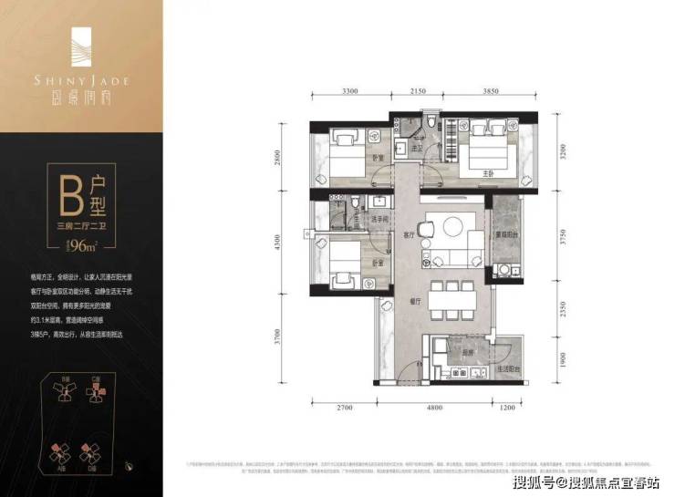 🟤横厅3房 建面约96㎡3房2厅2卫