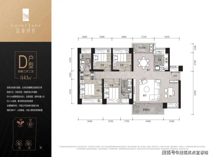 🟤舒阔4房 建面约143㎡4房2厅2卫