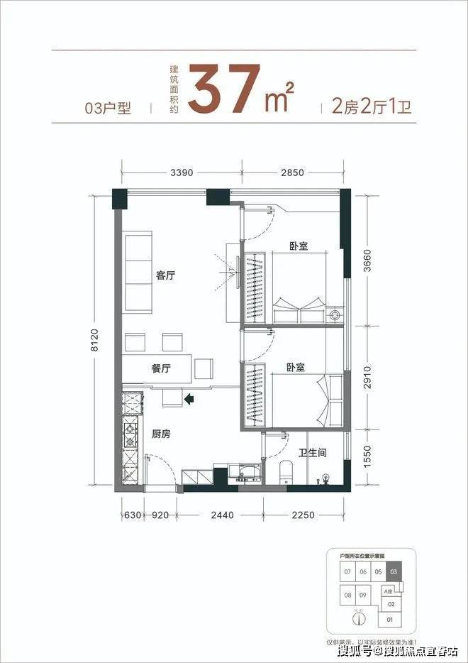 【产品面积】约37㎡小两房(实际套内使用面积接近54㎡)