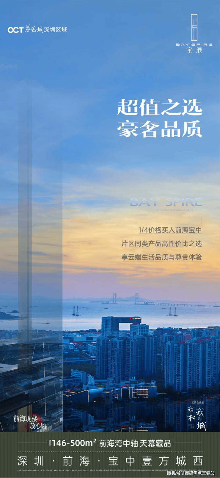 配套-区域地段篇-华侨城宝辰位居前海湾中轴之核,踞守湾区总部经济区前海湾处于珠江口东西两岸发展版图的核心,是继深圳湾后,深圳重点打造的“黄金内湾”,融合了山、海、林、城、岛、港、湾等特色资源。内湾由宝中、腾讯未来科技城(大铲湾)、妈湾、前湾、桂湾等片区环绕形成,为前海扩容后的核心组团,也是深圳西海岸上的湾区门户。