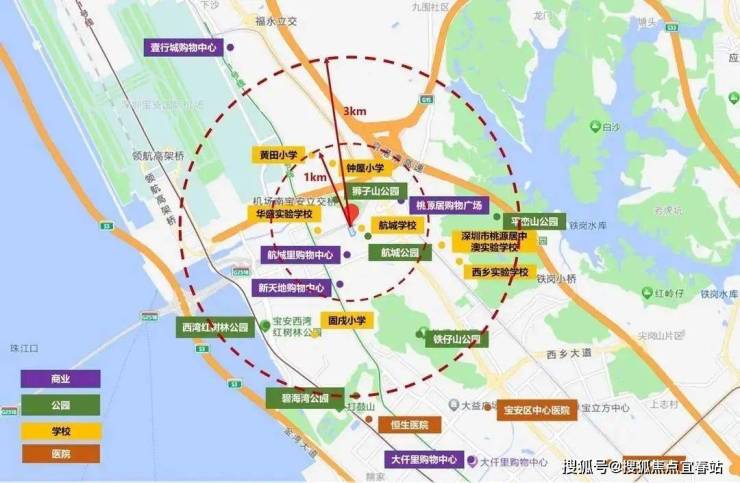 地铁:楼盘周边的地铁网络发达,目前距离最近的地铁站是1号线固戍站1.3公里12号线西乡桃源站约1.5公里。