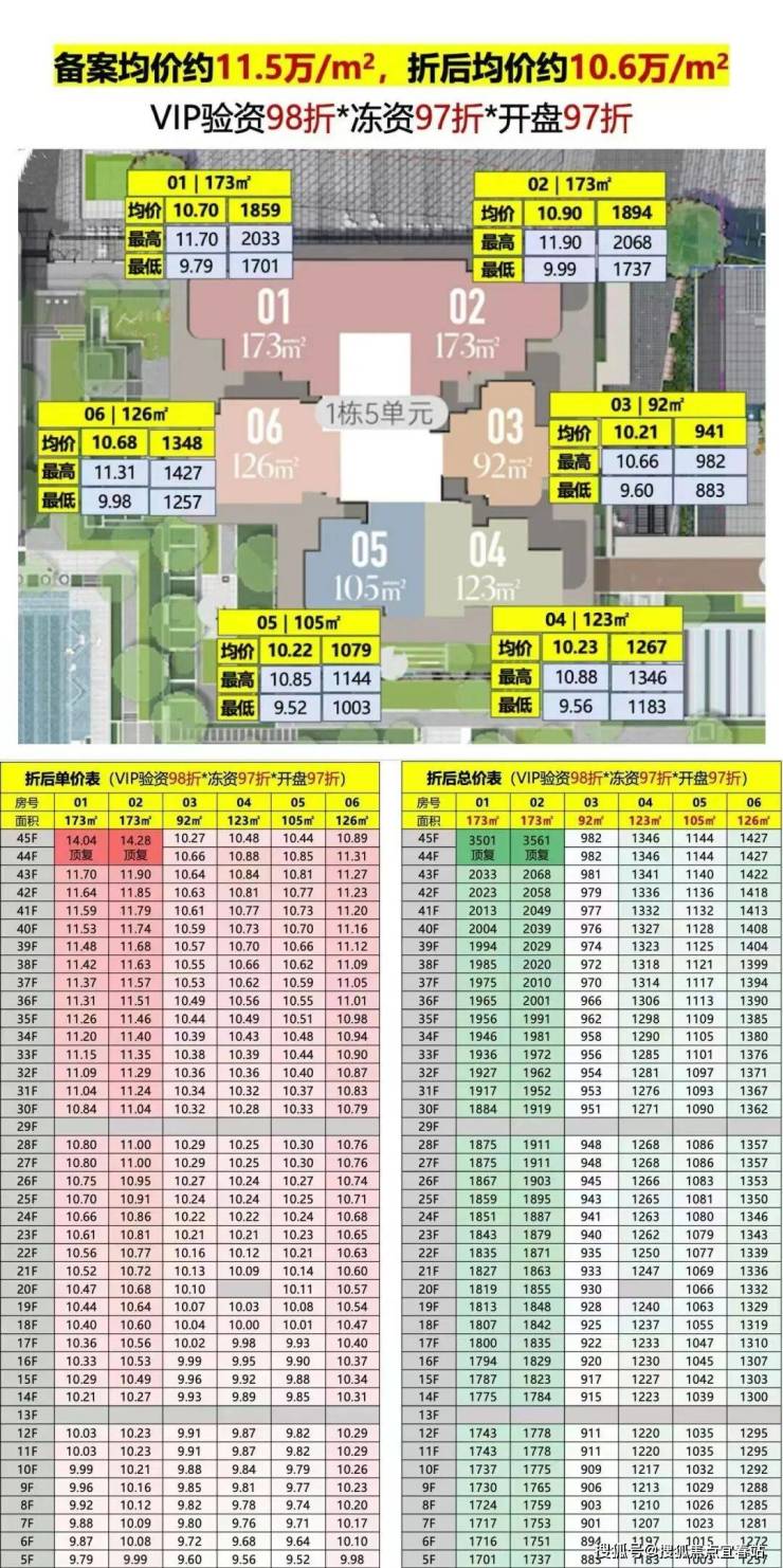 备案均价约11.5万/㎡!销售折扣约92折,折后均价约10.6万/㎡!单价9.6-11.9万/㎡!(下方有折后价格详细表)
