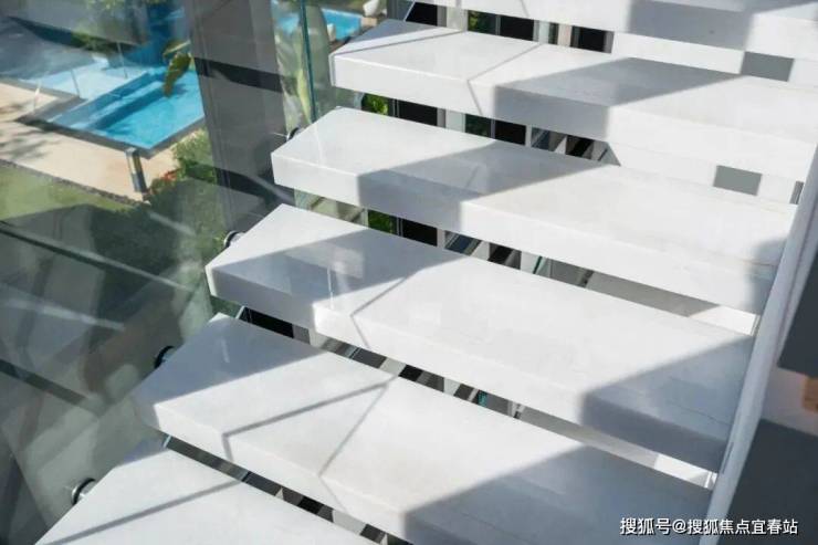 双轨归家系统:天然大理石旋梯 / 瞰海全景电梯