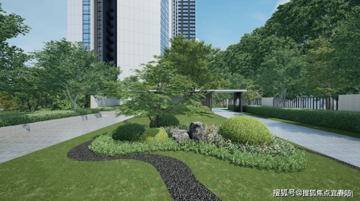 再看金众的设计图中,一一来看,大门让人眼前一亮,现代中式建筑精髓融合现代化格调,沿袭了金众公馆系的基因。超尺度设计,高端大气,美感外溢且内外协调。