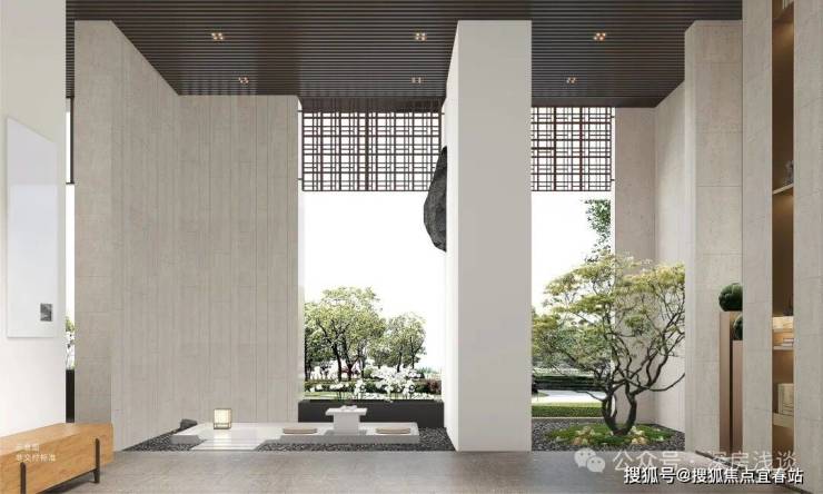 将新中式建筑精髓与当代格调完美融汇于大门之中;极致挑高尺度,尽显恢弘气度。
