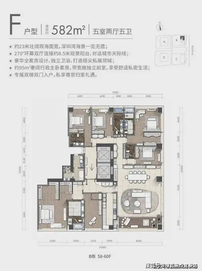 基础信息:项目位于深圳市南山区后海中心区,占地面积约2.5万平米,总建筑面积约41万平米,拥有海景公寓、高端商业配套及私人会所等。周边交通便利,配套成熟,是深圳顶级豪宅之一,吸引了众多高端人士关注。