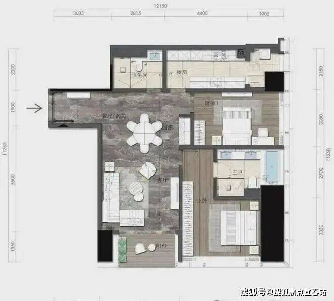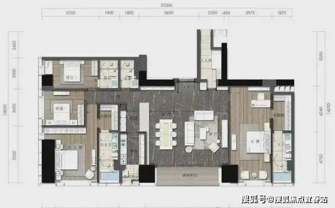 约164㎡2房2厅2卫(独立入户玄关,动静分离,约33㎡豪华主卧,承载品质生活)