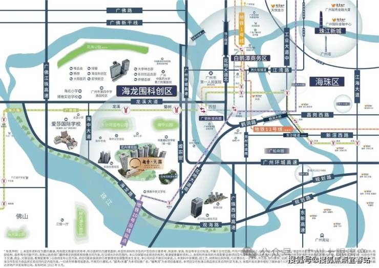 但老实说,越秀天瀛位置跟白鹅潭关系不大,距离白鹅潭核心区域将近10公里。