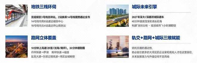 方洲无缝接驳地铁3号线吉祥站,两站换乘14号与16号线大运站,一部短剧的时间直达岗厦北。10分钟上水官高速、沈海高速,15分钟上外环高速,30分钟即达市内。