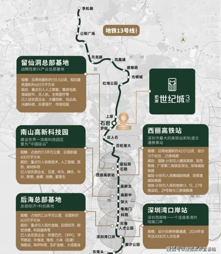 距13号线(在建中)石岩站约1公里,4站南山,7站科技园;