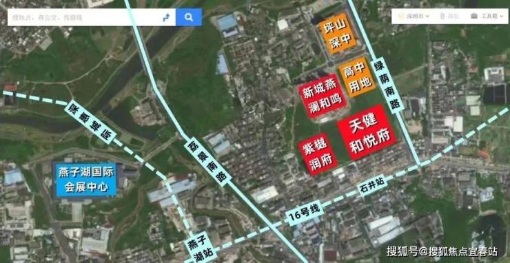 天健和悦府,位于坪山区石井街道金田路与绿荫南路交汇处西北侧,项目地处燕子湖片区,西北部为燕子岭公园,坪山河自西向东贯穿而过,区内汇聚了山、水、田、林、湖、草等多要素,得天独厚“看山、见田、拥河、揽湖”的生态优势是深圳市独一无二的生态资源,片区西侧的深圳坪山燕子湖国际会展中心,与深圳国际会展中心,深圳会展中心也是形成了一城三馆的格局。