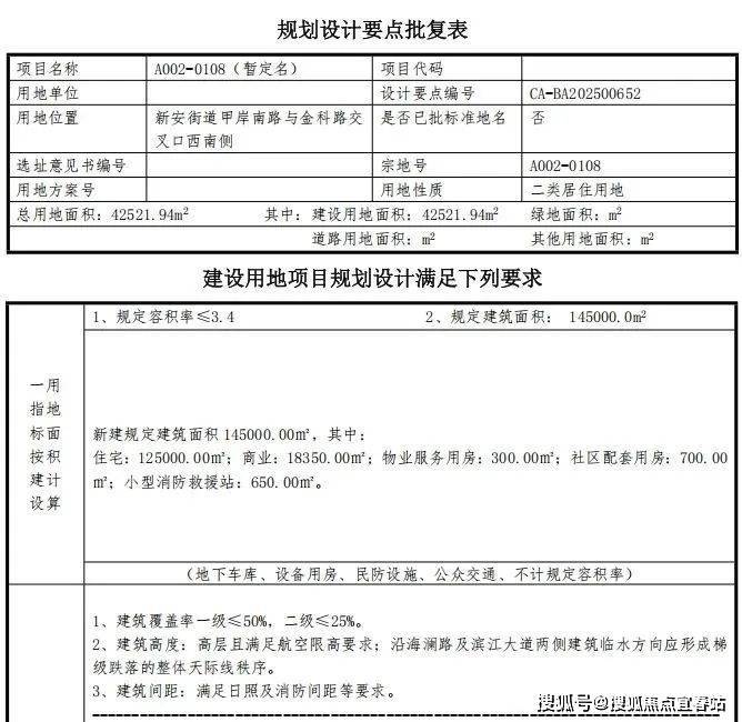 宗地总面积42521.94平方米,其中,规定建筑面积145000平方米,挂牌起始价64.09亿,竞买保证金约12.8亿,土地使用年限为70年。