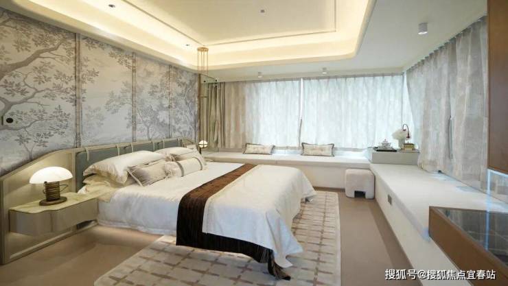 主卧设计了南北通透三面采光,南向开间4.2米,整个主卧套有近30㎡左右。