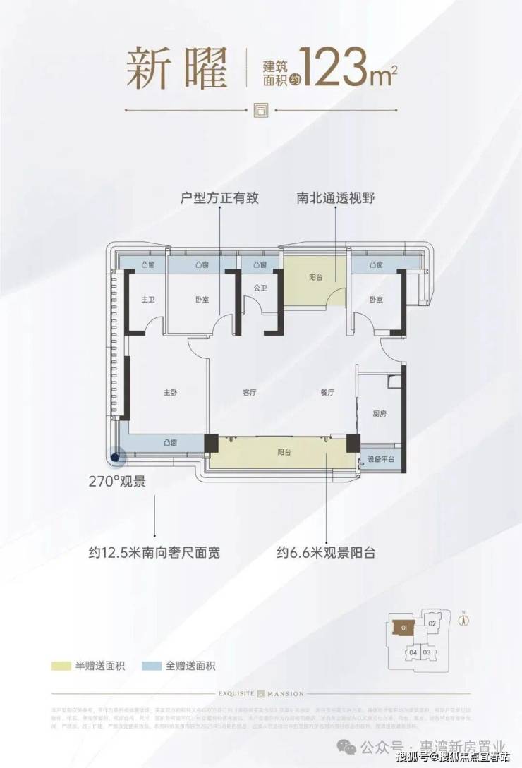 建面约91-123㎡高定新规住宅,使用率94%!约3.1米层高,扩容生活尺度。户户坐北朝南,三面采光,打造270°环幕主卧。131户配置132个车位,3梯4户。