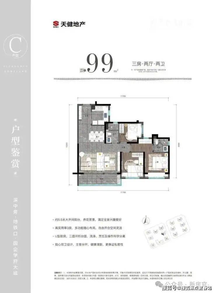 99㎡的3房2厅2卫,折后总价约320-330万,单价约3.2-3.4万/㎡。