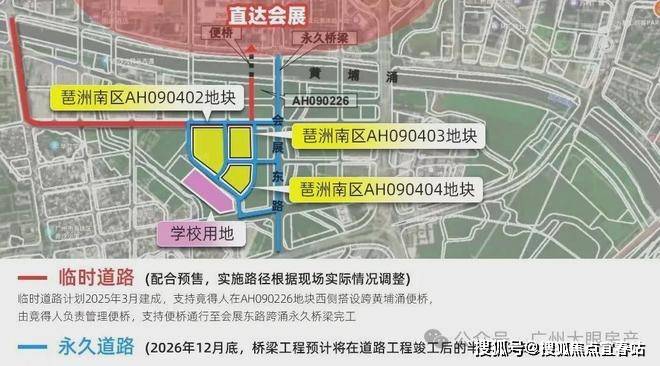 一是临时道路,会搭设黄埔涌便桥,连接琶洲中区,计划2025年约一季度建成;