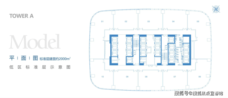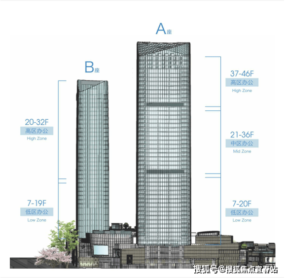 标准层面积:A座2000㎡;B座1500㎡