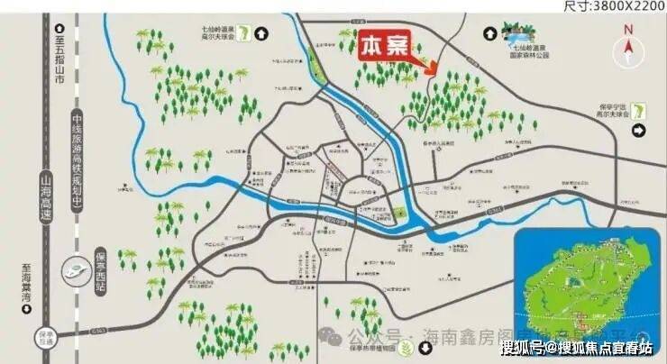 项目位于保亭东环路以南,七仙大道以北,东临029乡道,项目与海棠湾区距离33公里仅需20分钟车程,便可享受“国家海岸”海棠湾的顶级配套,有301医院、会展中心、国家免税城、高尔夫球场、海洋公园、五至七星级国际酒店带,全方位提升了保亭的区位优势及配套优势,项目距离三亚机场也仅需50分钟车程,最大程度的方便了与三亚的衔接,项目北距五指山市39公里,40分钟的车程;东距陵水40公里,约45分钟车程,另外中线高铁计划2023年开工,起于海口站,向南途经定安-屯昌-琼中-五指山-保亭-止于三亚站,形成了无缝的山海互动与蓝海相接。