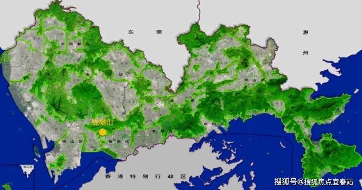 中心区域:深圳山海城中轴,左手香蜜湖、右手华侨城,六大总部基地环伺