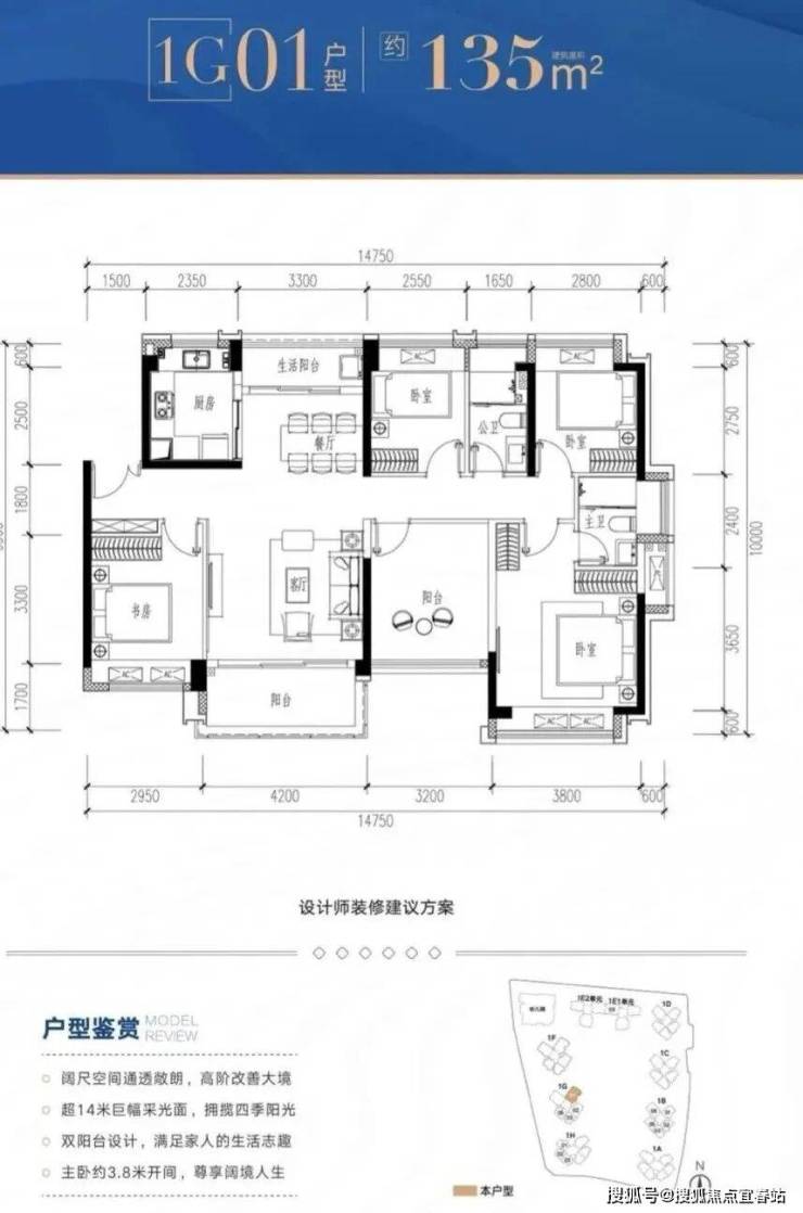 1G-01户型:约135㎡ 五房两厅两卫: