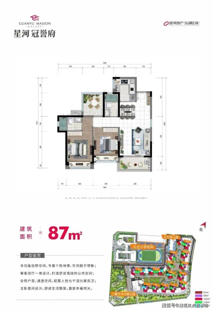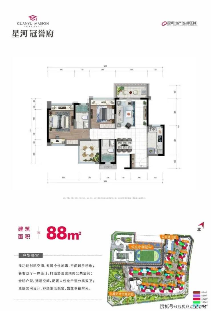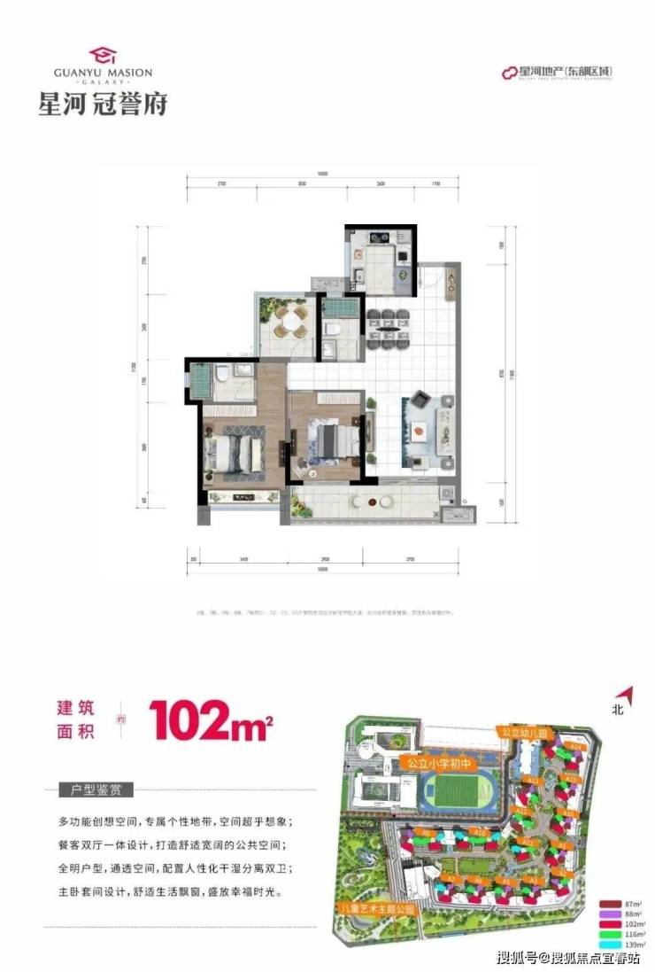 星河冠誉府打造建面约88-139㎡匠心精品,以星河一线品质,研选家装大牌,打造榜样区域的高品质精装产品;同时以多产品面积段,科学设计,超大景观阳台,多开间朝南,缔造片区稀缺的全生命周期户型。