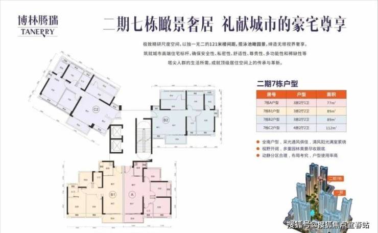 • 产品有77-112平米3-4房高拓户型,使用率高达96%;