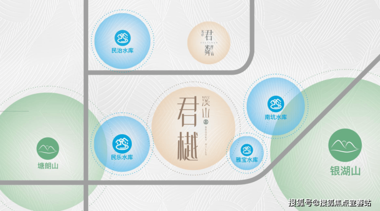 溪山君樾位处深圳“中心湖区“,是深圳最稠密的湖区所在地,项目周边环伺4大自然生态湖泊---民治水库、民乐水库、雅宝水库、南坑水库,居住在此,湖岸微澜风光无限,滋养健康涵养心境,孕育都会生活于家族贵雅之道;独享城市无价峰顶对晤湖景无垠的豁达高远。