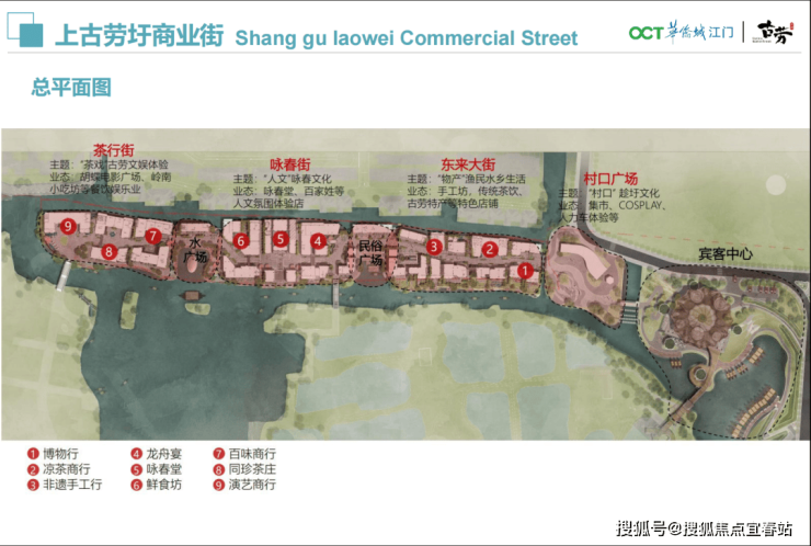 ——古圩盛景片区:古色古香的岭南特色水岸风情商业街,首期商业上古劳区,总长约0.5k,商业约10000㎡, 7000㎡二楼水岸客栈,吃喝玩乐一站式即享;
