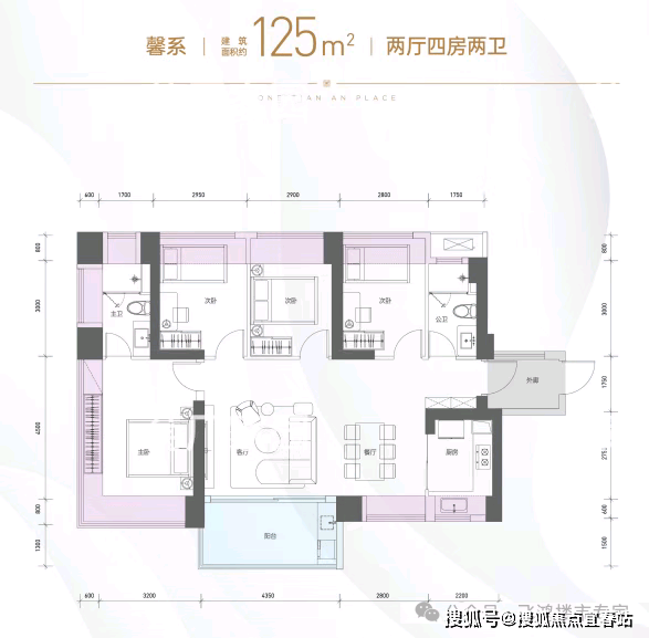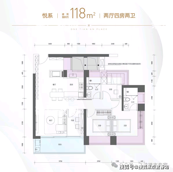 118㎡ 4房2卫全屋飘窗设计,主卧配备270°大飘窗,5.75米大阳台