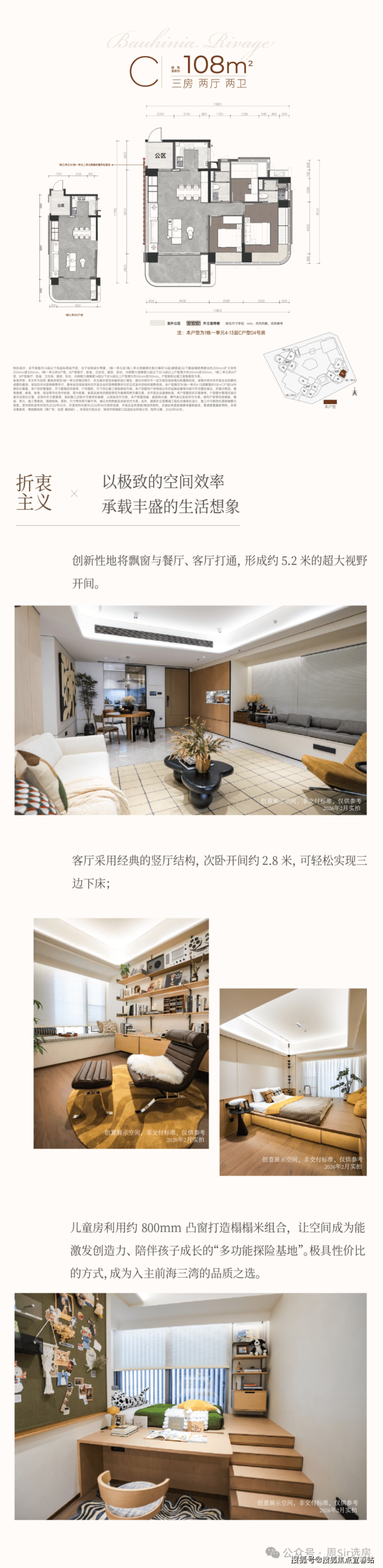 108㎡的3房2厅2卫,折后总价887-1117万/套,单价8.16-10.33万/㎡。
