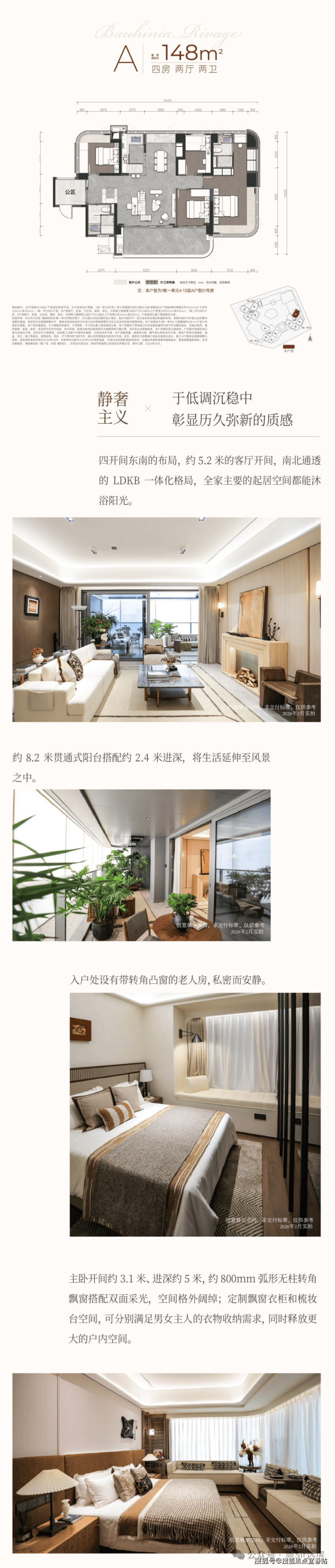 前海妈湾湾啟紫荆府二期(紫荆屿)在2026年4月14日取证入市,本次推出1栋1/2/3单元,面积有108㎡的3房2卫,129-130-148-151㎡的4房2卫户型,共408套房源,备案均价10.73万/㎡,备案单价8.8-12.48万/㎡,总价956-1848万/套,合同约定在2028年3月份带精装交房。