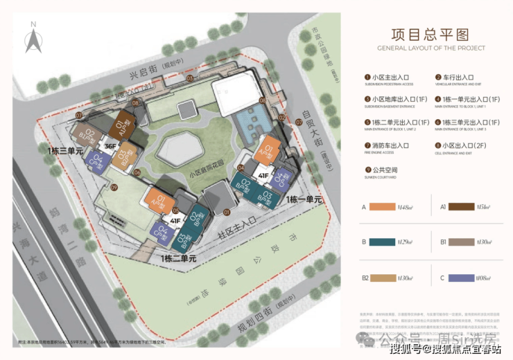 由3栋36-41F住宅塔楼和一栋局部2-3F商业组成,住宅总共410户,层高3.1米,3梯4户,停车位578辆,招商物业,9.5元/㎡/月,预计2028年3月精装交付。