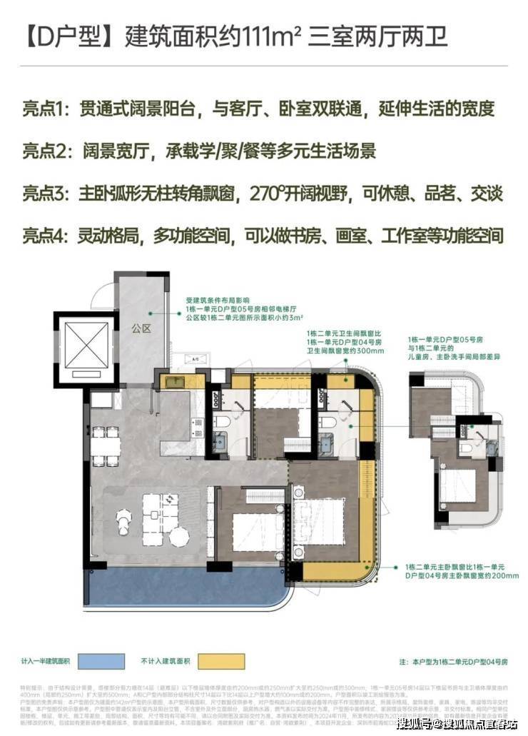 小区有485套纯住宅,车位595个,容积率5.14,共有三栋住宅,每栋做了36-37F高的4梯5户设计,每户都有专梯入户空间