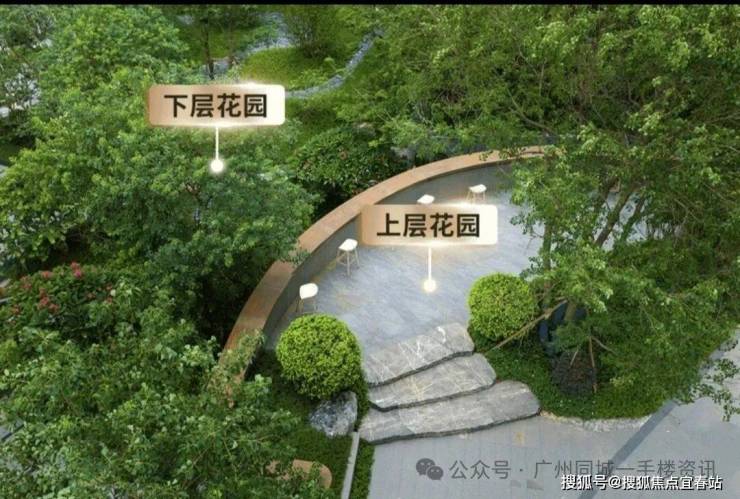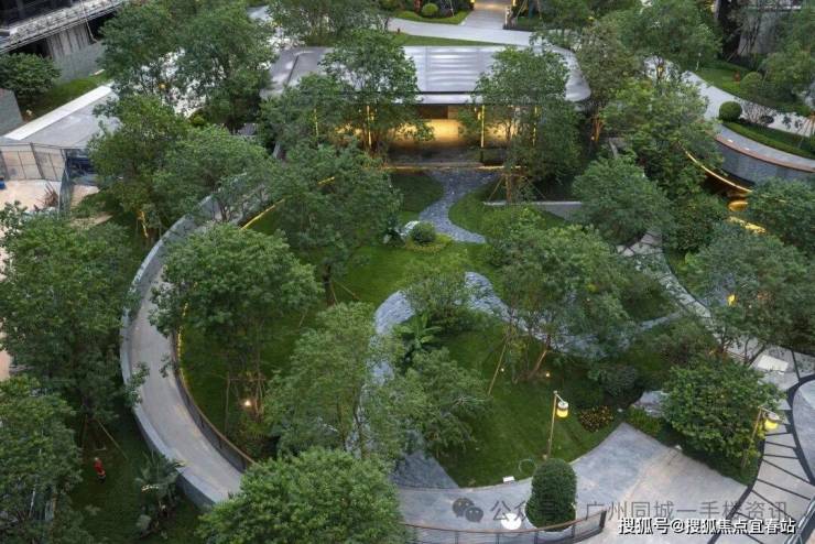 天河源筑不同,它选择用一个节点集中拆解,就如下图,项目凭借地势,打造了一座双层立体花园,手法大胆而新颖。