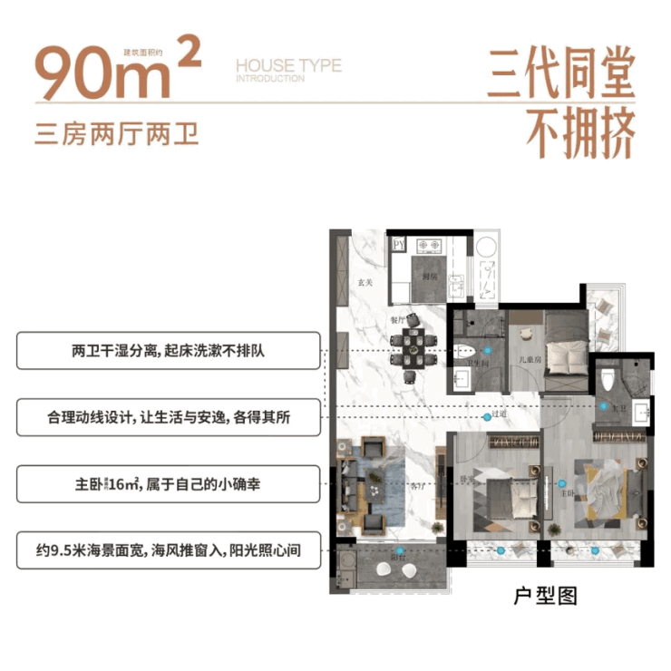 三期高层建面约90-111㎡ 总高32层,2梯5户