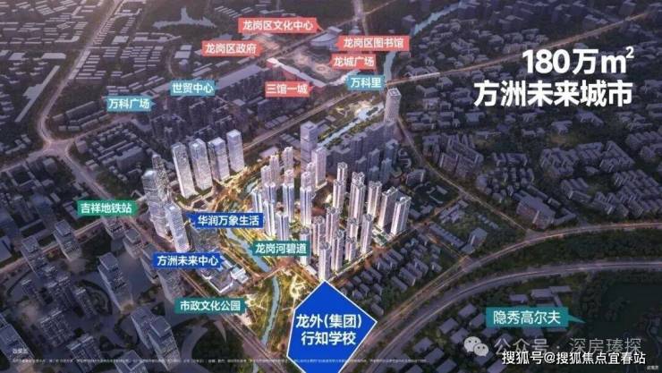 合正方洲在龙岗中心区、区政府的周边,云集了整个龙岗区的政务机构、商务集群、文化地标、教育资源与庞大商圈。