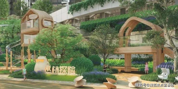 小区还对标了五星级酒店会所标准打造了约600㎡的泳池会所,配备了约10米长的儿童泳池与45米长的成人泳池,且配建了瞭望塔、树屋、攀岩墙、健身天地、功能球场等配套设施。