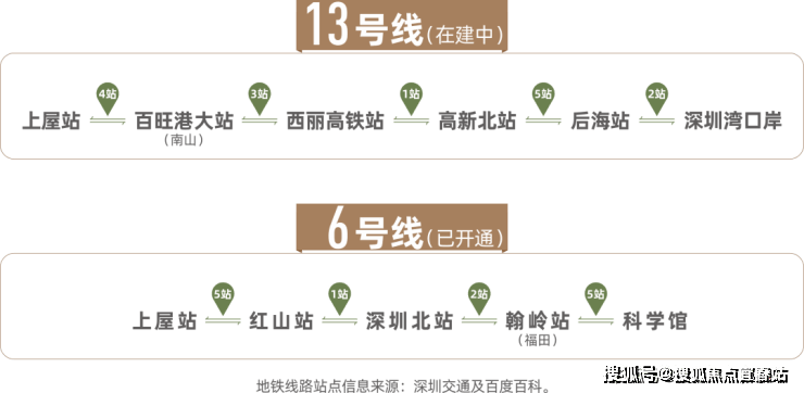 4站南山8站科技园(6/13号线上屋站)