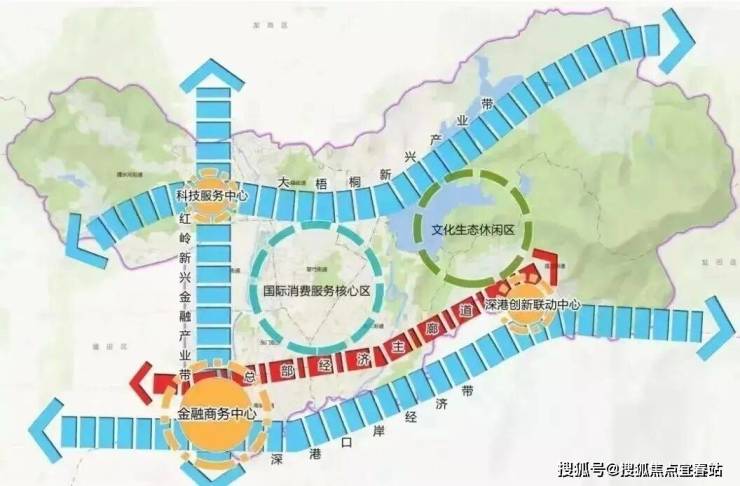 大湾区金融极:其中红岭新兴金融产业带作为"深圳三大金融增长极”之一,与前海国际金融城、福田香蜜湖金融街并列,罗湖将先天的金融优势及政府的政策支持,以金融产业赋能罗湖新发展,助力深圳成为大湾区经济发展引擎。( 信息来源:罗湖发布)