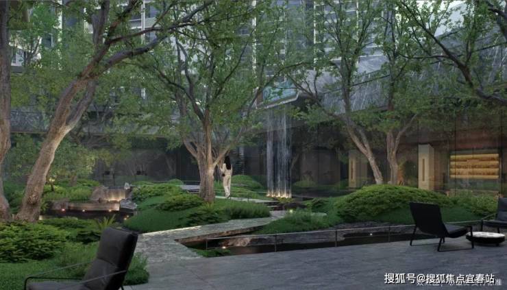 ③下沉式森谷水庭:融合景观元素与毗邻地下会所,构筑一方私密绿洲,演绎宛如画中游的桃源之境