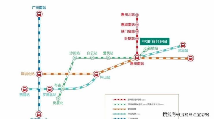 中洲河谷花园在惠州南站是粤港澳大湾区重要综合轨道站之一,厦深高铁约28分钟直达深圳北,约68分钟到达香港西九龙;深圳地铁14号线(在建中)延长线(规划中)官宣1-2年内动工,中洲河谷花园近距离惠州南站、新桥站双地铁口(规划);深汕高铁官宣2020年动工,建成通车后约10多分钟抵达深圳南山;惠州轻轨1号线(规划中),是惠州南北交通大动脉;多轨枢纽助力“湾区1小时融城生活圈”。新桥一路、内环东路(建设中)、站前路(规划中)约10多分钟快速接驳南站