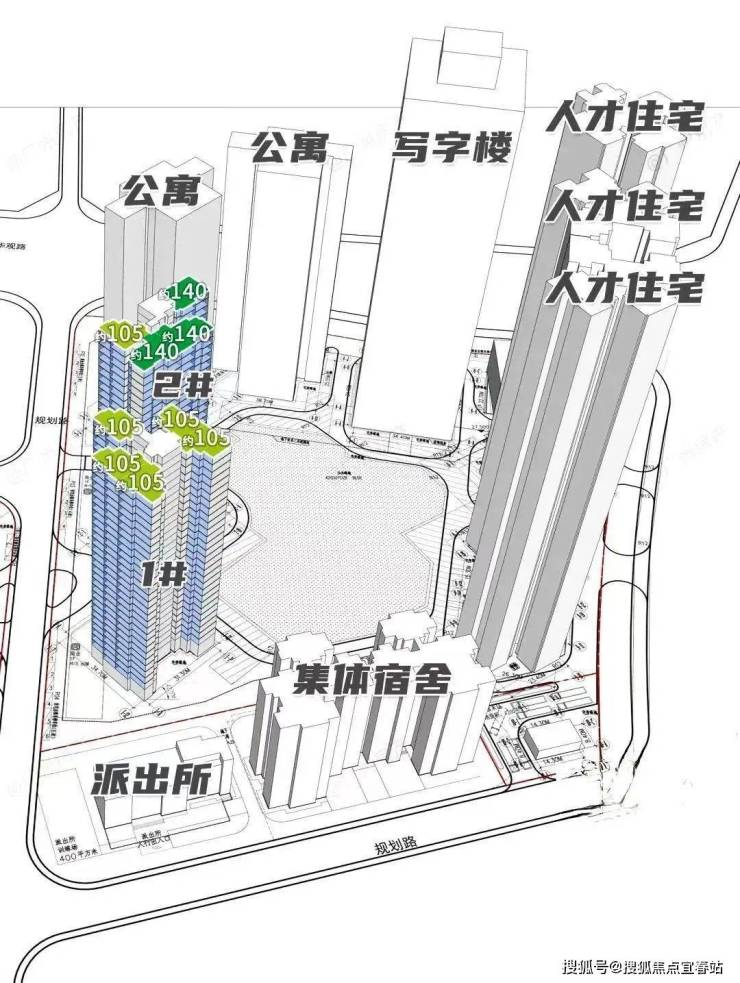 东地块规划有2栋住宅、2栋公寓、1栋写字楼和3栋人才房,住宅总货量预计265户。