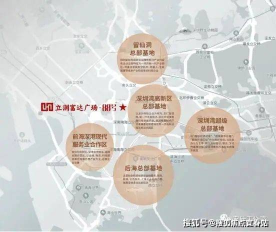 中国科创看深圳,深圳科创看南山,深圳市6+1总部基地,南山区独占4+1,项目毗邻深圳湾高新区总部基地,前海合作区,后海、深圳湾、留仙洞总部基地环绕,战略高地围合,智领深圳价值中芯。